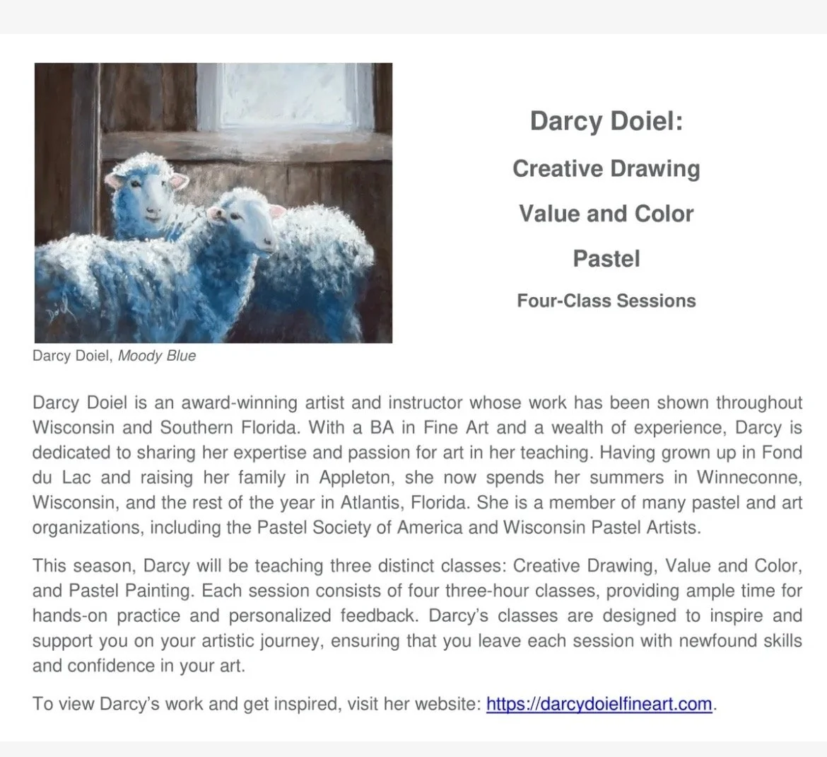 Darcy Doiel will be teaching Pastel classes at The Artists Eye Gallery Jan. 7, 14, 21, 28 from 9 AM - 12 PM. Please call the gallery for scheduling and payment, 561-586-8666. The location is 604 Lucerne Ave, Lake Worth Beach, FL. See you there! https://lwartleague.org